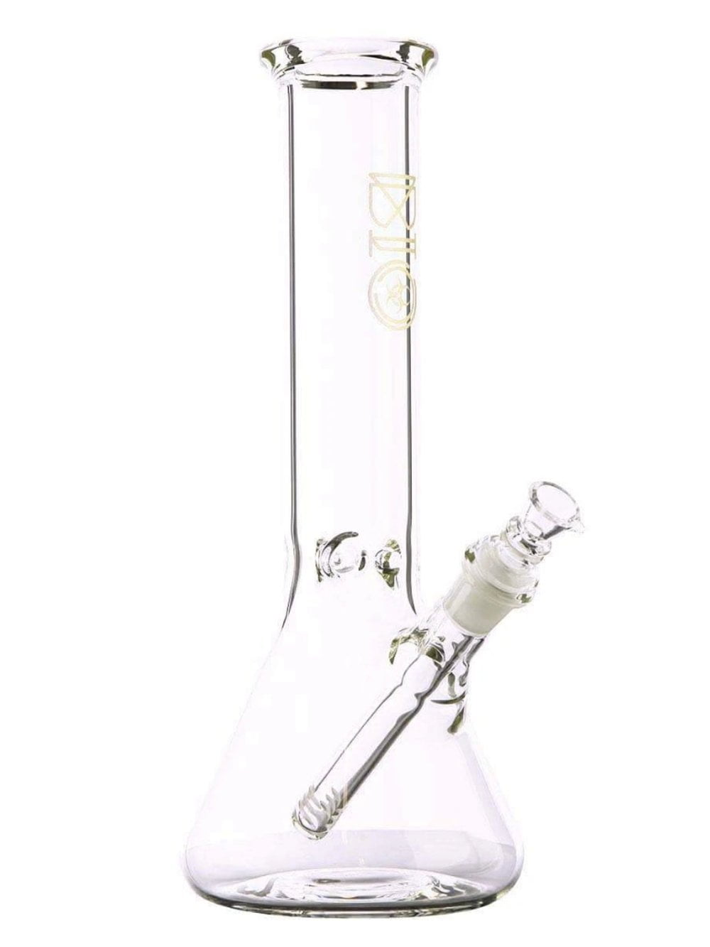This Bio water pipe is 12" tall and is a standard water pipe in the Bio brand. The beaker base allows more water which allows more filtration for a bigger hit.