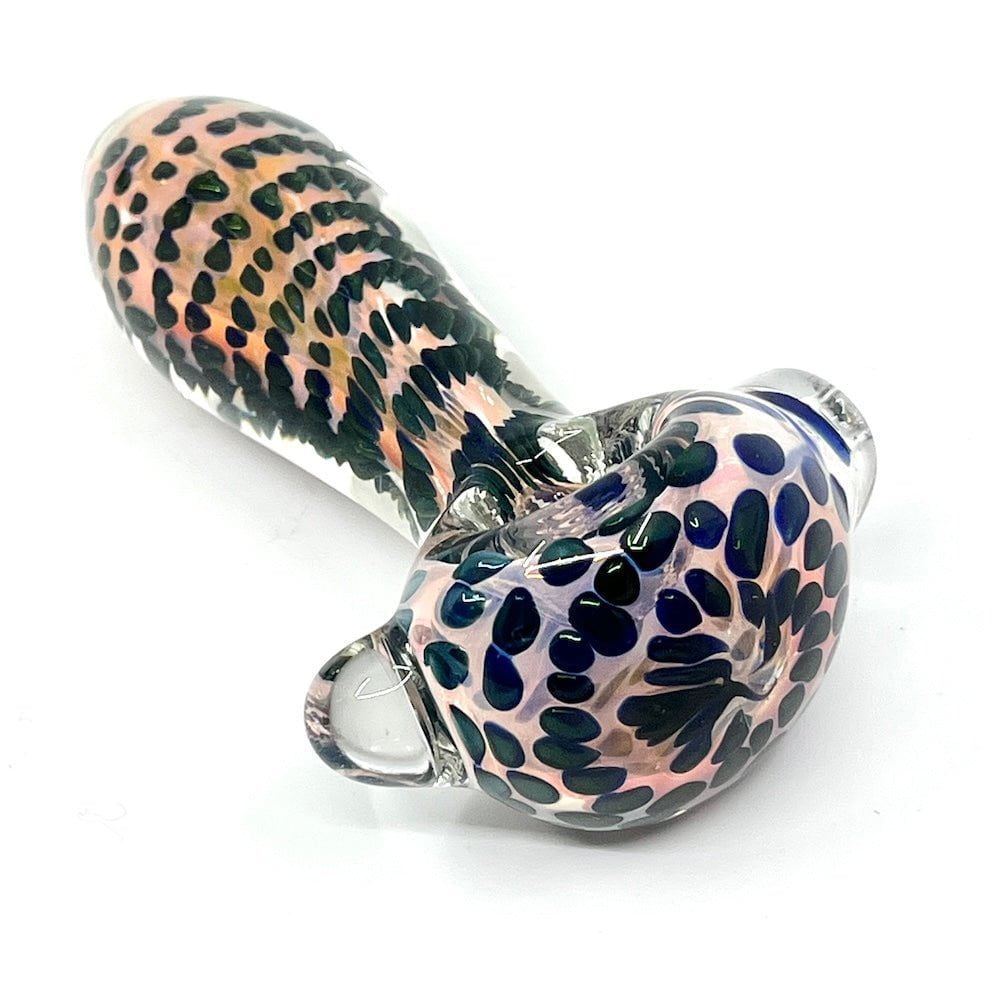 The Gold Floating Dots Pipe is a compact stunner that brings dreamy vibes to every session. Fumed with 24k gold, this piece sparkles with a radiant glow and develops rich color shifts the more you use it. The floating gold dots suspended in the glass give it a surreal, almost magical appearance that makes each puff feel special.