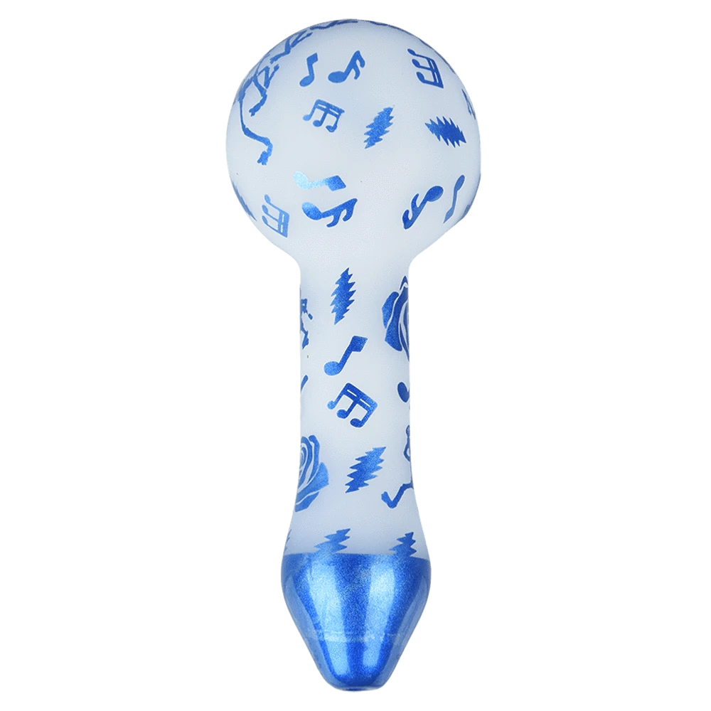 Crafted with thick, heat-resistant borosilicate glass, this hand pipe is built for durability and smooth performance. The frosted finish enhances grip and showcases the skellies in stunning detail. Whether you're a Deadhead or a collector of standout glass, this piece is a timeless tribute to psychedelic heritage. For legal herbal use only. Not intended for tobacco.